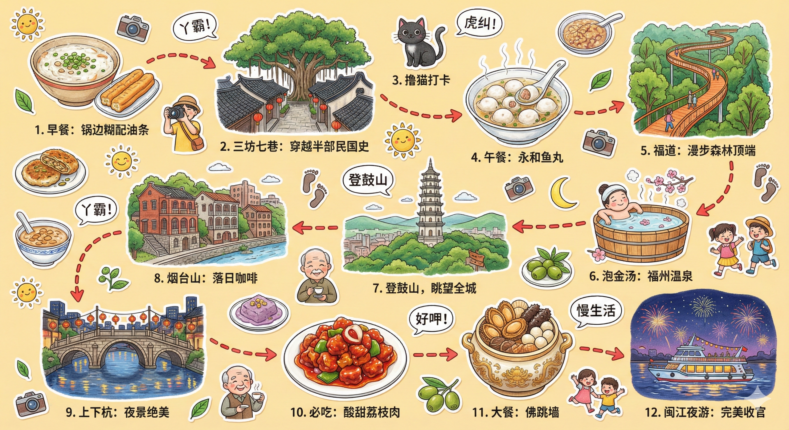 手绘风格的福州自由行攻略