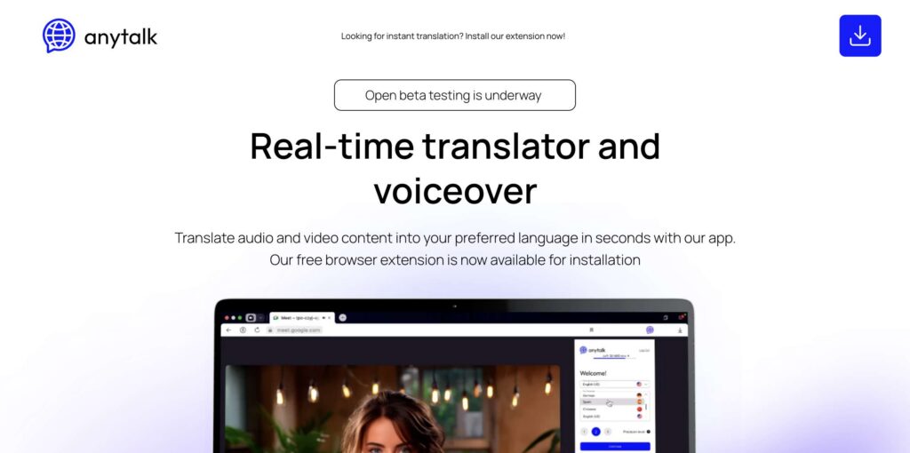 Anytalk是一款实时翻译和配音应用程序,能在数秒内将音频和视频内容翻译成你喜欢的语言,还有免费浏览器扩展可供安装。它致力于打破语言障碍,让用户在各种场景中实现顺畅的跨语言交流。