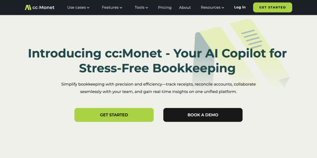 cc:Monet是一款AI财务助手,旨在帮助大小企业轻松实现精准、高效的记账。在统一平台上,能跟踪收据、核对账目、团队无缝协作并获取实时洞察,众多财务团队已借此节省大量时间。