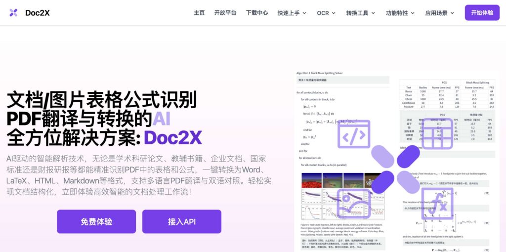 Doc2X是一款由AI驱动的智能文档处理工具。它凭借先进的解析技术,能精准识别多种类型文档中的内容,为用户带来高效智能的文档处理体验,满足多领域的多样化需求。