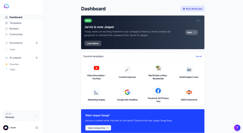 Jasper拥有一个名为Boss Mode的编辑器,它能够利用AI技术帮助用户完成长篇文章的写作,提供了一种创新且高效的方式来处理需要大量文字输出的项目。