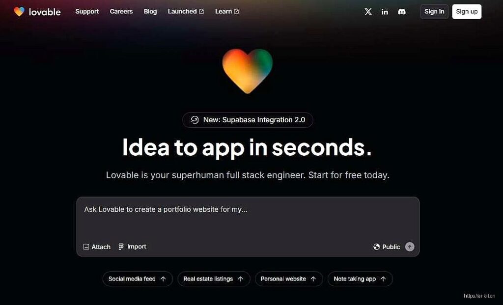 Lovable是一款能让你在数秒内将想法转化为应用的强大工具,堪称超级全栈工程师。无需编写代码,只需用自然语言描述想构建的内容,它就能帮你快速实现,让创建软件变得前所未有的容易。