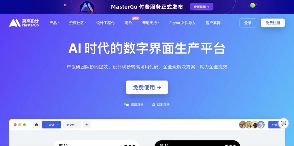 - 注册登录:可通过微信或蓝湖注册登录MasterGo平台。