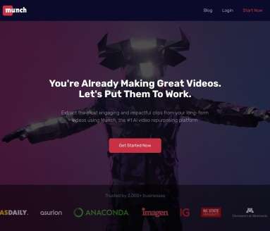 Munch是排名第一的AI视频再利用平台,它能从你的长视频中提取最具吸引力和影响力的片段,帮你充分利用已有视频内容。