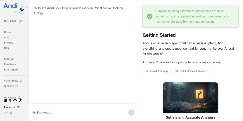 Andi搜索是一款智能友好的搜索助手,能以精准、高效的方式帮助用户获取所需信息,凭借独特优势在搜索领域崭露头角。