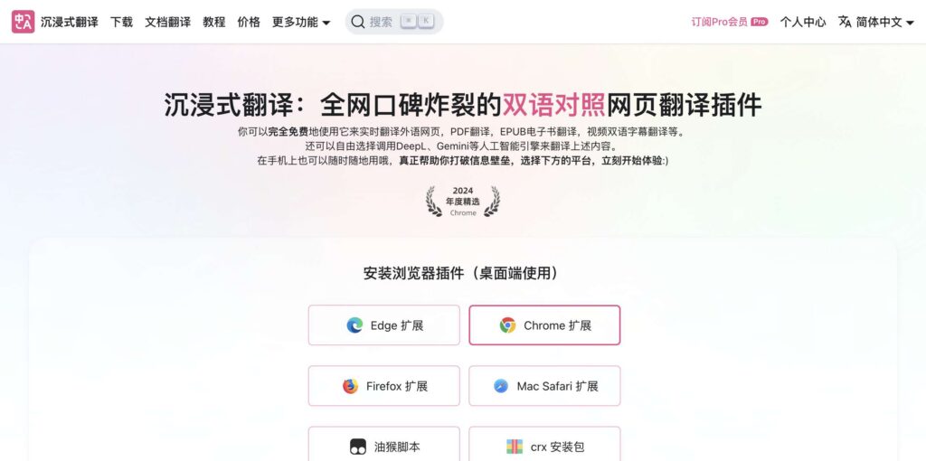沉浸式翻译是一款备受好评的双语翻译扩展工具。自2023年推出后,已帮助超百万用户打破语言障碍,自由获取全球知识。它能让用户免费翻译外语网站、PDF文档、EPUB电子书,还能为视频生成双语字幕,支持多种人工智能翻译引擎,且在手机上也能便捷使用。