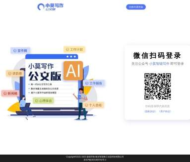 - 微信扫码登录,关注公众号“小莫智能写作”即可登录。