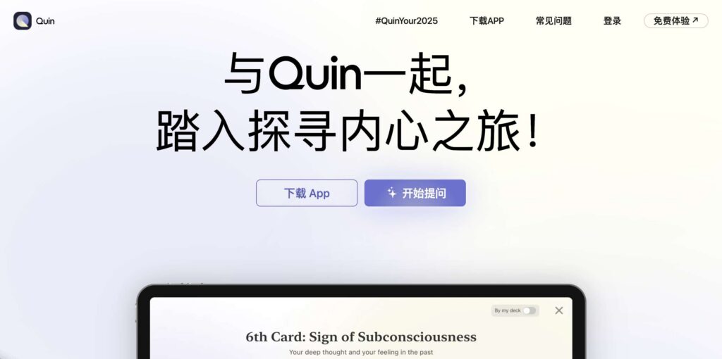 Quin APP是一款独特的AI塔罗应用,无需教程就能快速上手。它以塔罗牌为依托,能为用户在生活各方面提供指引,是值得信赖的伙伴。